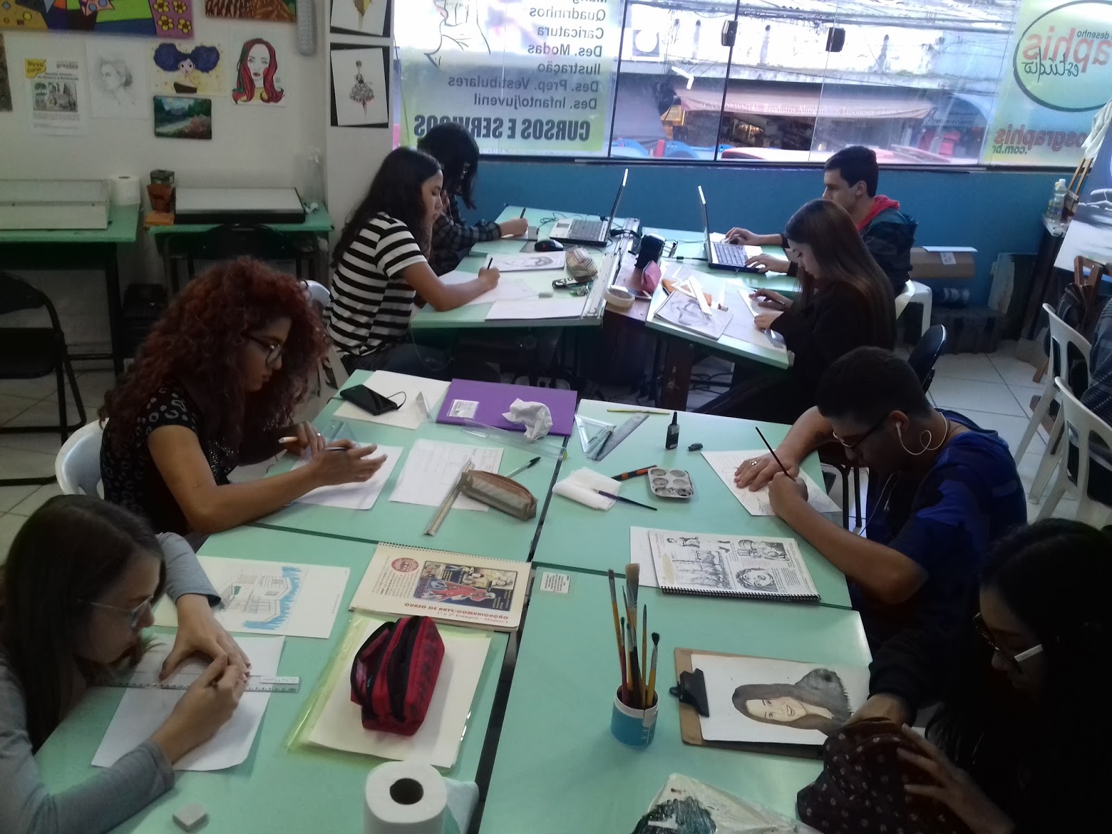 | Exercício com Aguada de Nanquim - curso de Desenho Artístico |